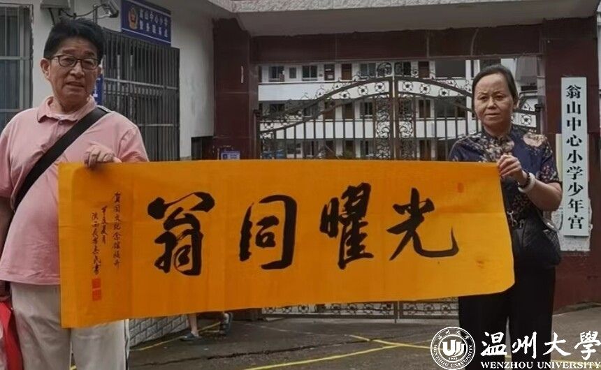 王海安律师还向翁同文纪念馆馈赠由著名书法家、中国书法研究院(北京)研究员、陕西唐鑫书画院副院长胡坤方先生特意书就的《甲辰芒种参加泰顺翁同文老先生纪念馆提升有感》诗如:江浙有先贤,勤政在长安,抚民多辛苦,操劳无怨言,筹建联志村,百年青史传,名讳曰翁柽,义薄三秦天。英雄翁学赞,率军驻潼关,杀敌如切瓜,血透征衣衫,倭寇胆俱裂,铁军实难撼!大儒翁同文,勤学又苦钻,盛名播四海,寰球皆煊然,荣耀归故里,襄举纪念馆!名门是翁家,福寿皆绵绵!