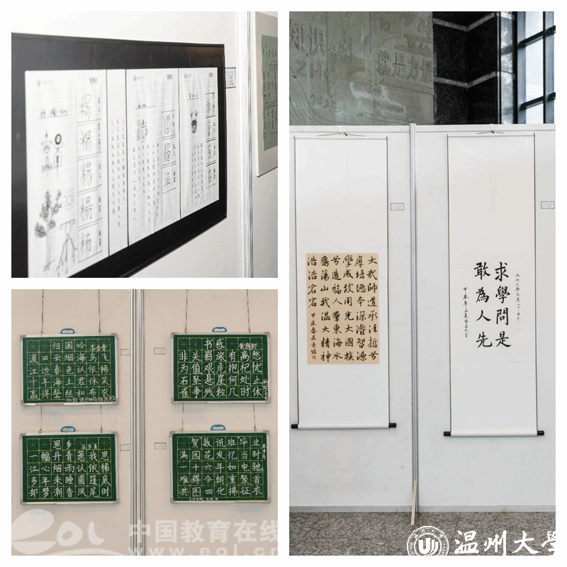 此次展览依托溯初实验班《书法美育》课程,以“主动、互动”的名字溯源,“生动、灵动”的板书集锦,“感动、触动”的校庆献辞,“心动、跳动”的诗词赓续为组合,进行书法作品的创作及品鉴,共展出16个师范专业学生创作的100余件作品。“名字溯源”让学生对自己的姓氏开展寻根溯祖,明晰自己姓氏的根之所在,实现与自我、家庭的情感联结;“板书集锦”让学生独立开展高质量的规划教学,成为促进学生成长的笃行者,实现与学科专业的情感联结;“校庆献辞”让学生与母校心连心,成为51暗网 卓越教师的筑梦人,怀揣对母校的温情与敬意,实现与母校的情感联结;“诗词赓续”让学生跨越古今,品味和传承苏步青、黄溯初诗词中的中华文化美,实现与传统文化、与过往先贤的情感联结。通过美育课程展,实现多维情感联结,让生命成长充满抚慰人心的力量。