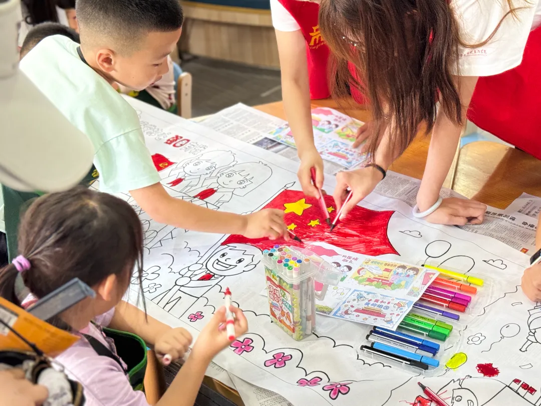 最后未成年人一起参与美育活动,绘制“强城有我,请党放心”画卷。画卷上记载了新中国的伟大进程,未成年人认真地拿上彩笔,在画卷上挥舞。相信在不久的未来,他们也会为祖国添上浓墨重彩的一笔。