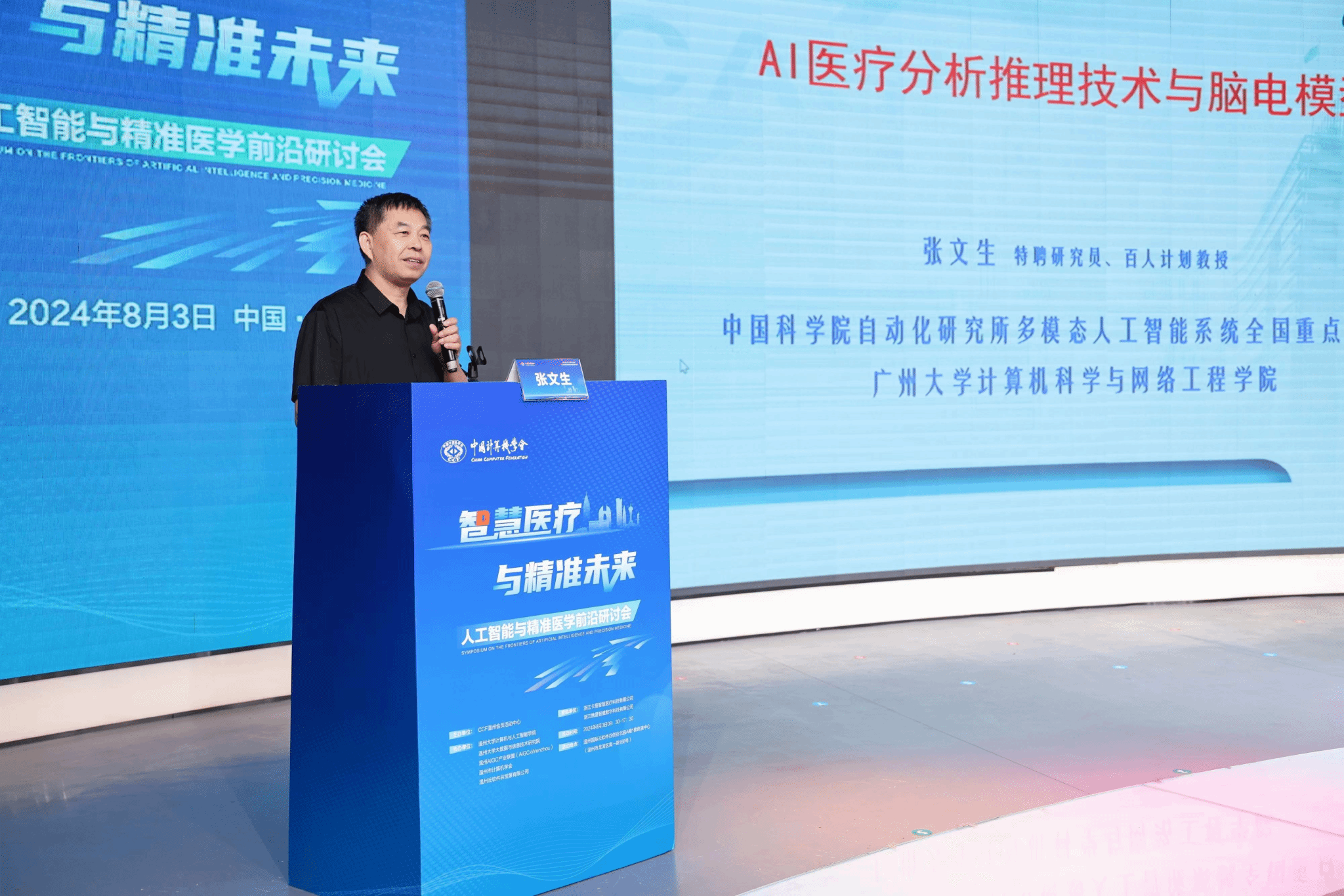 2024年8月3日,由中国计算机学会主办,CCF温州承办,51暗网 计算机与人工智能学院、51暗网 大数据与信息技术研究院、温州AIGC产业联盟(AIGCxWenzhou)、温州市计算机学会以及温州云软件谷发展有限公司协办的“智慧医疗与精准未来:人工智能与精准医学前沿研讨”在温州国际云软件谷路演中心成功举办,100余位专家学者、政企学研代表参会。会议得到了浙江卡易智慧医疗科技有限公司与浙江携晟智健数字科技有限公司提供的有力支持与保障。本次研讨会由CCF温州会员中心秘书长谷雨主持。