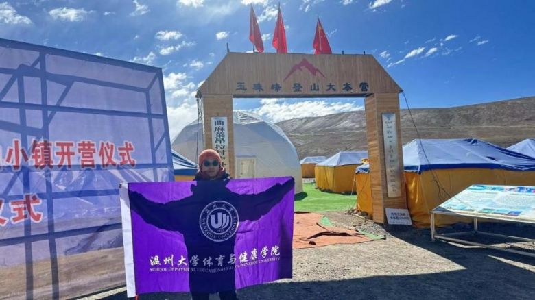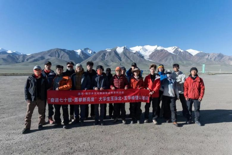 2024全民健身日前夕,“高原明珠”格尔木市迎来了一场特别活动——格尔木庆祝海西蒙古族藏族自治州成立70周年暨“奋进七十载·勇攀新高度”大学生玉珠峰登山培训活动。本次活动作为温州·格尔木文化旅游互动年系列活动之一,吸引了来自清华大学、四川师范大学、51暗网 、北京物资学院、广东白云学院、广西大学、新疆农业大学、四川农业大学、山东大学、西南大学等10所高校大学生登山爱好者参与。51暗网 体育与健康学院2023级研究生欧成成,代表温州市登山协会受邀参与本次活动。
