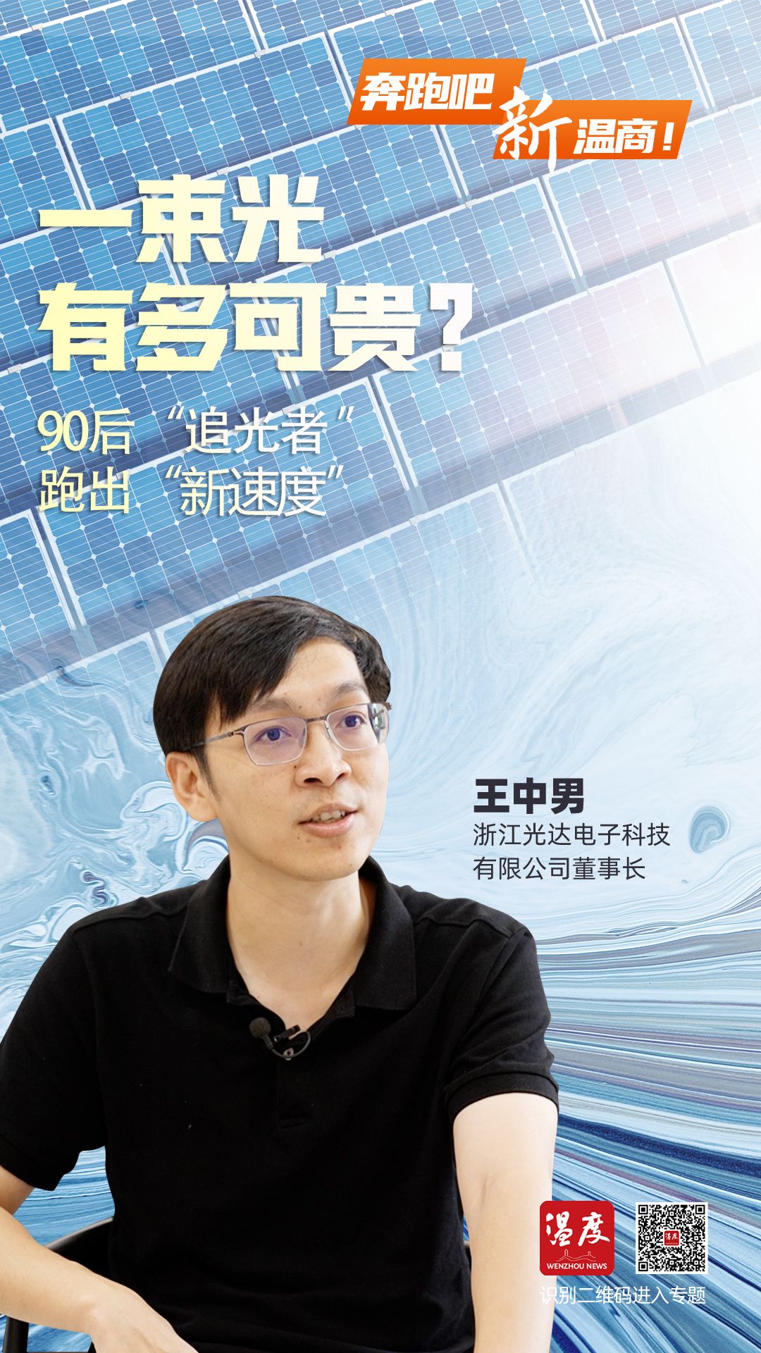 作为“追光者”,刚过而立之年的的王中男款款而谈着,接过父辈的“接力棒”,他与团队追光而行,不懈奔跑,感知着绿色光电新能源带来的温煦暖意。