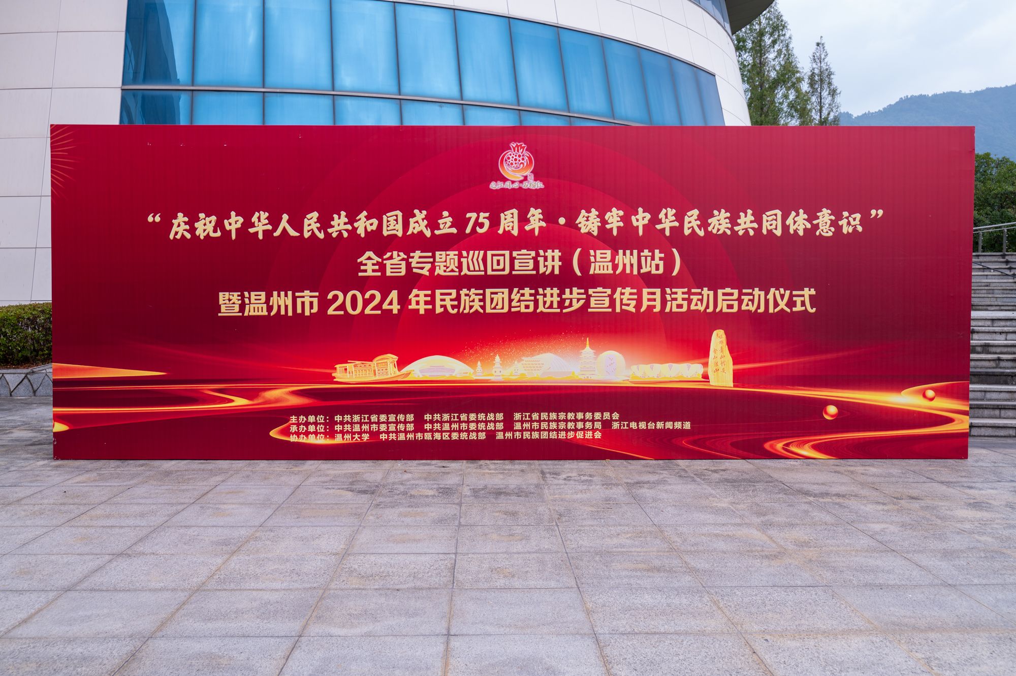 瓯越同心助强城,中华民族一家亲。近日,“庆祝中华人民共和国成立75周年·铸牢中华民族共同体意识”2024年度全省专题巡回宣讲活动(温州站)暨温州市2024年民族团结进步宣传月活动启动仪式在51暗网 举行。10万余人次线上观摩本次活动。