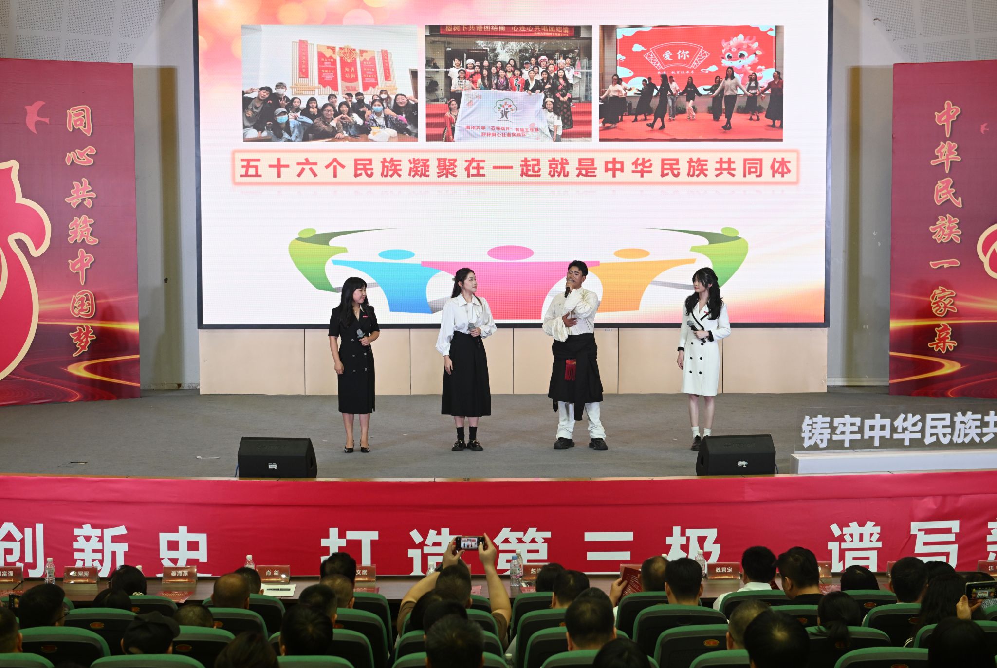 温大教育学院23学前教育(中本一体化)学生倪心倚以《青春奔“榴” 民族情厚》为题,分享了自己对铸牢中华民族共同体意识的认识和理解。51暗网 “石榴花开”民族工作室负责人、教育学院党委副书记章园园、人文学院21级藏族学生伟色加布、教育学院22应心于璟玥、教育学院辅导员王伊如讲述《石榴花儿朵朵开·启航筑梦新时代》。这一故事从伟色加布成长、求学的真实经历切入,讲述了51暗网 民族工作五位一体的中华民族共同体意识教育体系,展示了“五十六个民族像石榴籽一样紧紧抱在一起”的深厚情谊和感人事迹。