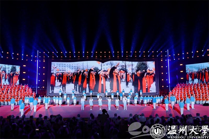 优雅深邃的小提琴演奏着《温大记忆》,触动着每一位温大人的心弦,慷慨激昂、饱含深情的《我和我的祖国》,青春阳光、积极乐观的《同爱同在》,温暖治愈、婉转动人的《小美满》……温大版的《可能》和温大学生原创歌曲《年轻》编织着属于温大人的独家记忆。 群诵《强国有我,青春担当》发出温大学子砥砺奋斗的铮铮誓言,歌曲与走秀《热烈的少年》展现了新时代青年乘风破浪、无畏风雨的昂扬斗志,灵动轻盈的舞蹈《瓯水长》诗意地展现出温州的山水悠悠,瓯水情长。