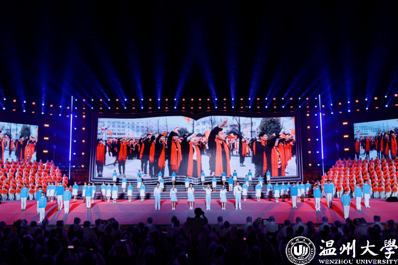 优雅深邃的小提琴演奏着《温大记忆》,触动着每一位温大人的心弦,慷慨激昂、饱含深情的《我和我的祖国》,青春阳光、积极乐观的《同爱同在》,温暖治愈、婉转动人的《小美满》……温大版的《可能》和温大学生原创歌曲《年轻》编织着属于温大人的独家记忆。 群诵《强国有我,青春担当》发出温大学子砥砺奋斗的铮铮誓言,歌曲与走秀《热烈的少年》展现了新时代青年乘风破浪、无畏风雨的昂扬斗志,灵动轻盈的舞蹈《瓯水长》诗意地展现出温州的山水悠悠,瓯水情长。