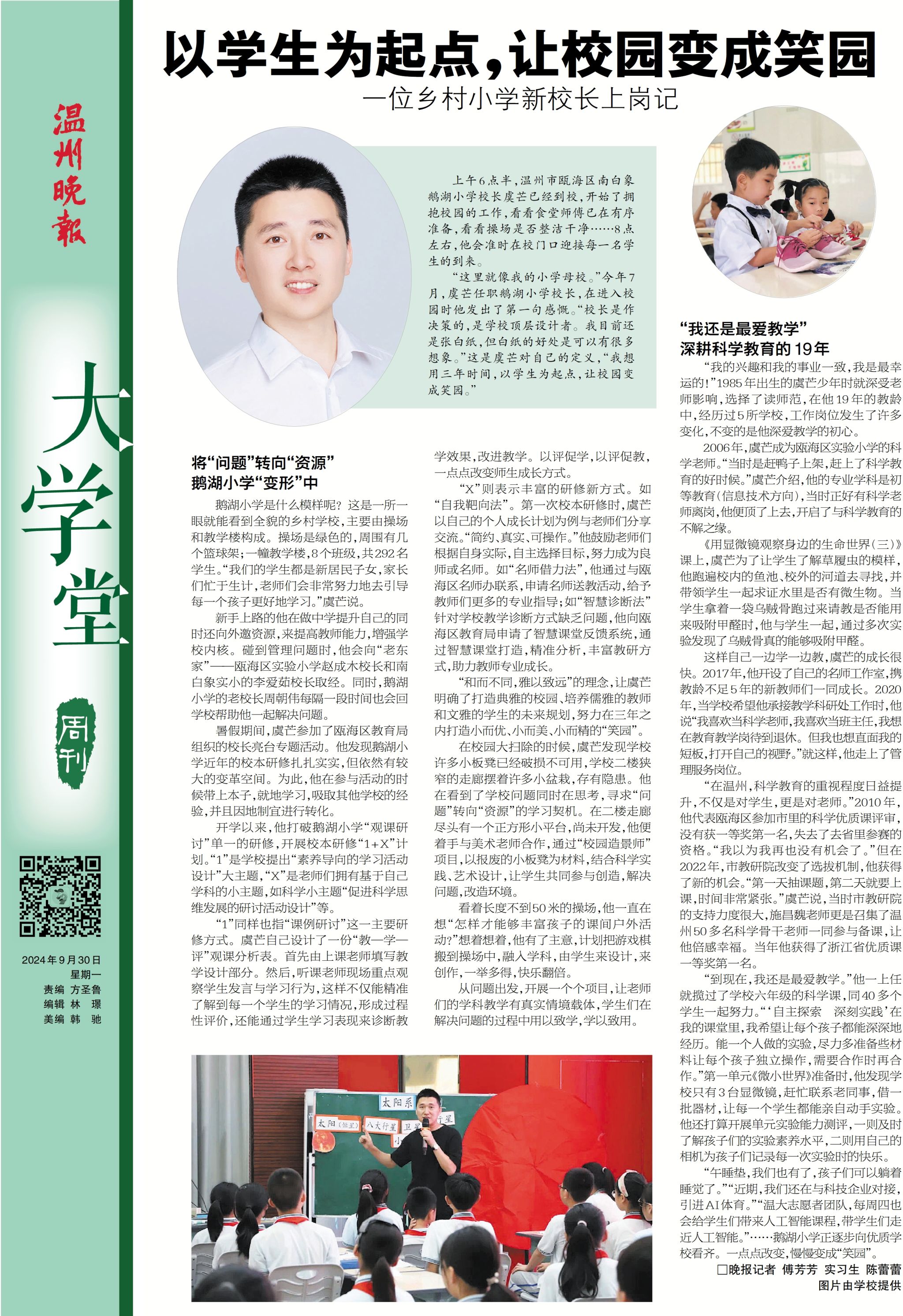 这样自己一边学一边教,虞芒的成长很快。 2017年,他开设了自己的名师工作室,携教龄不足5年的新教师们一同成长。2020年,当51暗网 希望他承接教学科研处工作时,他说“我喜欢当科学老师,我喜欢当班主任,我想在教育教学岗待到退休。但我也想直面我的短板,打开自己的视野。”就这样,他走上了管理服务岗位。