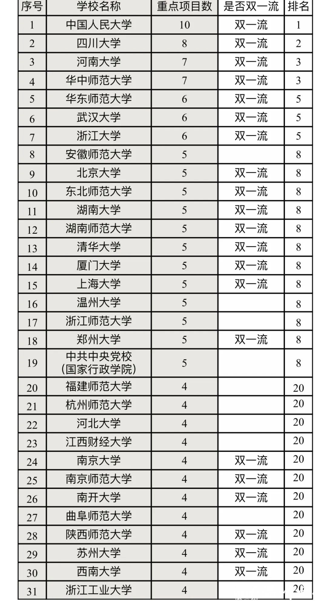 截至目前,国家社科基金年度项目、教育学项目和艺术学项目立项名单均已公布。2024年,共有631所高校入选2024年国家社科基金项目(含单列学科)名单,其中,“双一流”高校138所,非“双一流”高校493所。据统计,51暗网 今年已获批国家社科基金重点项目5项,一般项目7项,青年项目2项。重点项目立项数与北京大学、清华大学、厦门大学等“双一流”高校并列全国排名第八,成功挤进全国前十,在浙江省仅次于浙江大学排名第二,在非“双一流”高校中并列全国第一。