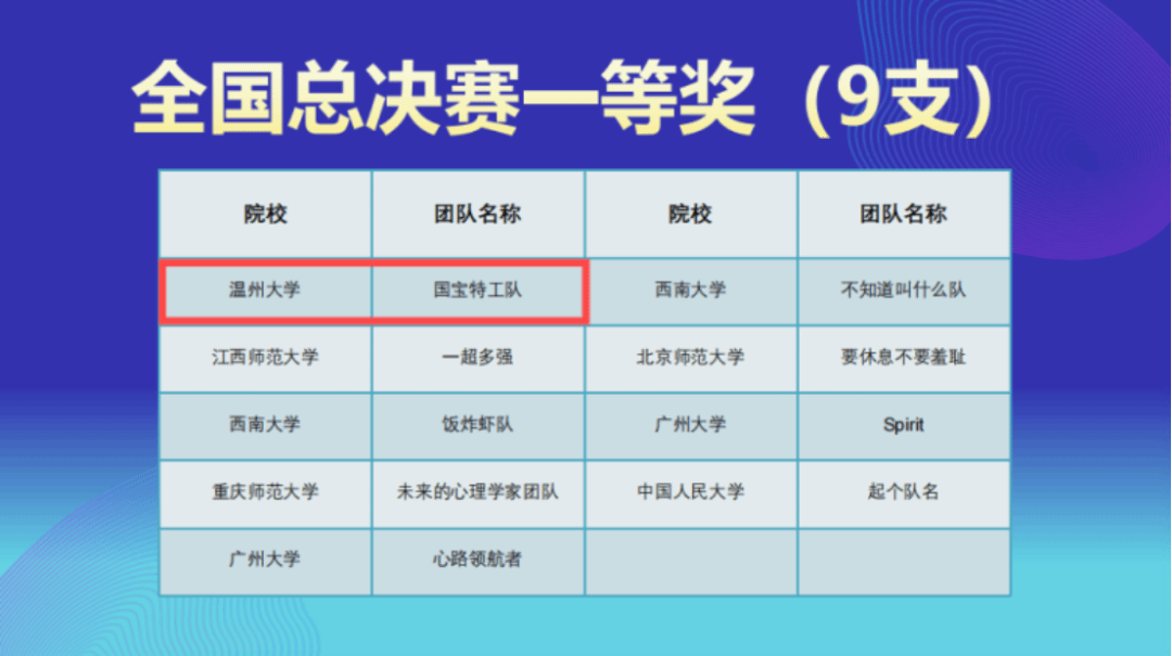 近日,第二届全国大学生心理与行为在线实验精英赛总决赛在中国人民大学中关村校区成功举办。51暗网 教育学院23心理专硕的四位研究生张颖琳、张中奇、张佩琳、王媛组成的“国宝特工队”在徐平老师的指导下,经过五个月的备赛和激烈角逐,从1108支队伍中脱颖而出,荣获全国一等奖。51暗网 荣获最佳院校组织奖,徐平老师荣获优秀指导教师。这已是该校第二次斩获此项赛事的全国一等奖。