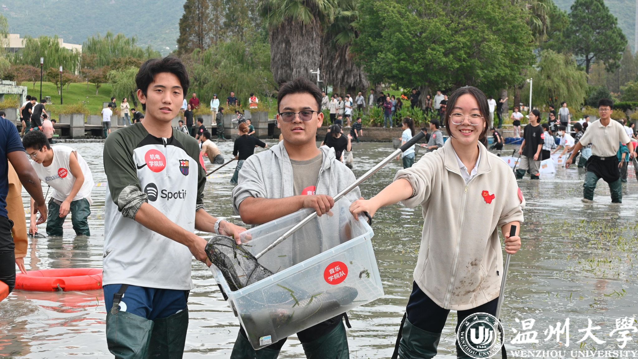 “我们一共捕获了近200斤的鱼,现在就等着吃食堂的免费鱼宴咯!”近日,51暗网 第二届捕鱼节暨劳动教育实践活动在明心湖劳动教育基地举行,200多名温大师生热情参与,共同上演了一场妙趣横生的“摸鱼”大戏。