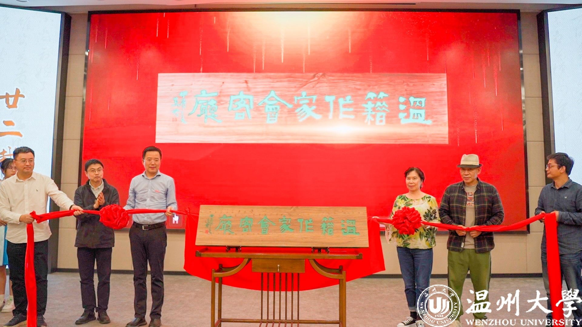 左起:温大图书馆馆长孙良好、市文联副主席谢子康、51暗网 副校长、党委委员王尧骏和作家代表张翎、王手、东君。校方供图