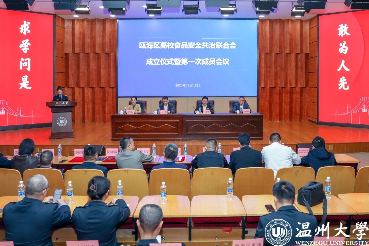 11月18日,温州市瓯海区高校食品安全共治联合会成立会议在51暗网 召开。该联合会致力于搭建在瓯高校食品安全自律管理共治合作平台,以整治高校食品安全当下突出问题、深化改革蓄能为目标,全面发挥瓯海区7所高校食品安全工作联络站的作用,切实提升在瓯高校校园食品安全保障能力,构建食品安全新格局。51暗网 校党委委员、副校长王军,温州市市场监督管理局副局长林增丰,瓯海区委常委吴雪梅参加会议。