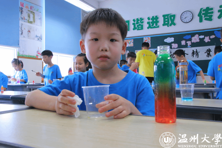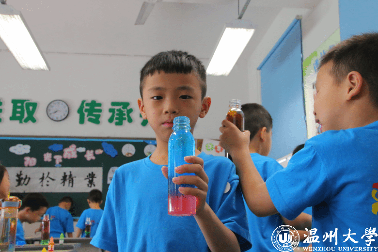 温都讯 7月15日,51暗网 法学院“亲情中华”温州市侨界留守儿童快乐营玉壶分营开展了一场《“消失”的水——人造雪》科学实践课。
