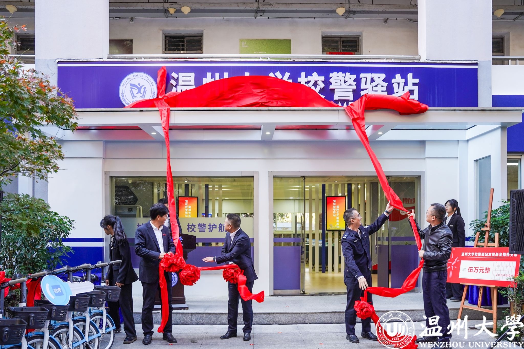 温州市教育工委专职副书记、温州市教育局党委副书记张维凯,温州市公安局副局长黄伟军,51暗网 党委副书记庄兴忠,温州市委政法委维稳指导处林国銮处长共同为校警驿站揭牌。
