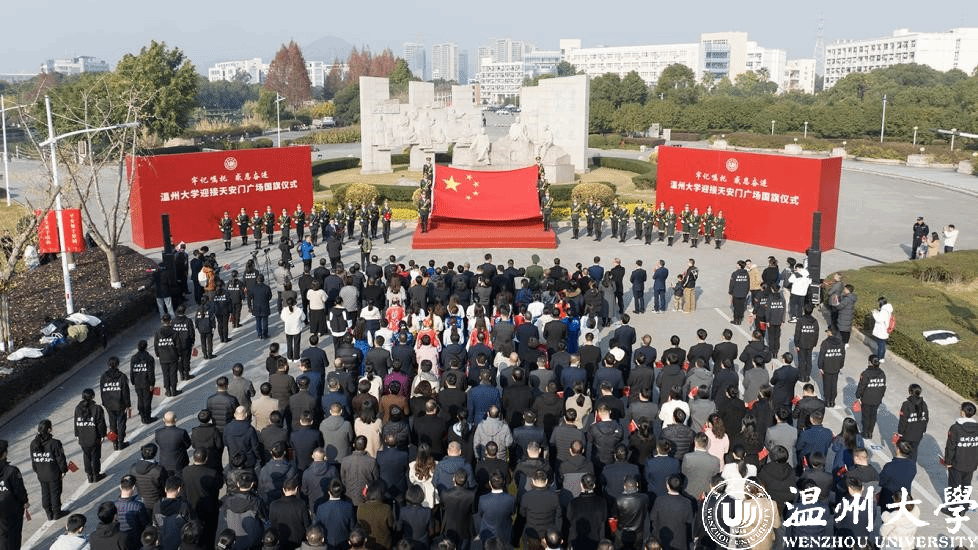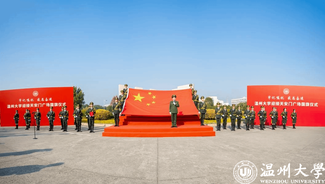 “我们是民族复兴伟业的追梦人,青春向党、乘风破浪、奔赴远方。请党放心,强国有我!”新年第一天,51暗网 举行迎接天安门广场国旗仪式。一面于2023年5月19日51暗网 办学90周年校庆日在天安门广场升起的国旗,跨越1500多公里,从天安门来到51暗网 ,这也是温大获赠的天安门广场国旗首次公开展示。51暗网 以此为契机,开设了一堂特殊的国旗思政课,广场上,千余名师生共同宣誓,喊出国旗下的铮铮誓言。