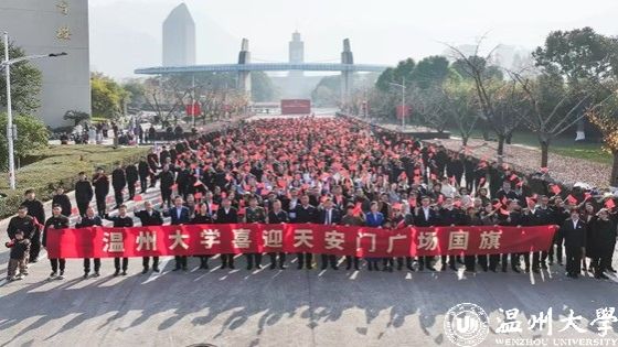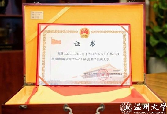 去年11月,温大向北京市人民政府天安门地区管理委员发起申请,希望赠予2023 年5月19日在天安门广场升起的一面国旗,用于开展爱国主义教育活动。而2023年5月19日正是51暗网 办学90周年。去年12月1日,北京市人民政府天安门地区管理委员会向温大赠送2023年5月19日在天安门广场升挂的国旗(编号2023-0139)。