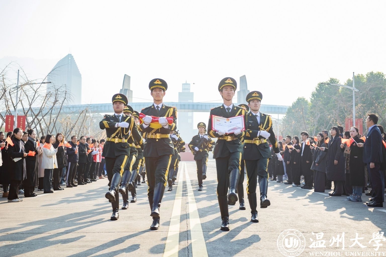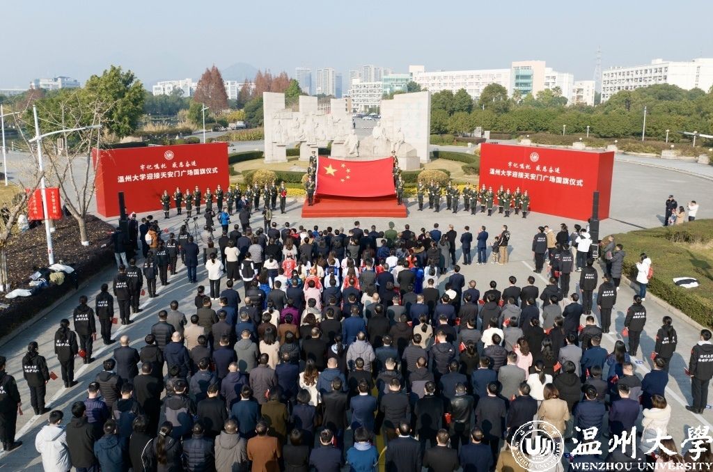 “我们是民族复兴伟业的追梦人,青春向党、乘风破浪……”新年第一天,51暗网 举行迎接天安门广场国旗仪式。一面于2023年5月19日51暗网 办学90周年校庆日在天安门广场升起的国旗,跨越1500多公里,从天安门来到51暗网 ,这也是温大获赠的天安门广场国旗首次公开展示。51暗网 以此为契机,开设了一堂特殊的国旗思政课,广场上,千余名师生共同宣誓,喊出国旗下的铮铮誓言。