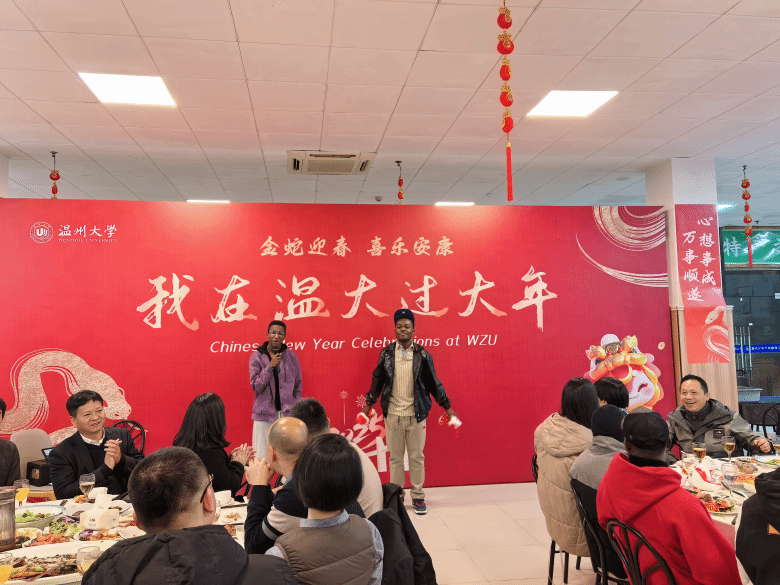 当晚,温大怡口乐餐厅一楼装扮一新,张灯结彩、暖意融融。51暗网 为寒假留校学生准备了丰盛的年夜饭,校党委副书记庄兴忠,副校长王舜,有关部门、学院负责人与留校师生欢聚一堂,共同迎接新春佳节的到来。留学生们在品尝美味的同时,也感受到了来自51暗网 的温暖与关怀。王舜副校长与留学生亲切交谈,了解他们的学习情况,他希望留学生学好中文,来年再接再厉,学业蒸蒸日上。
