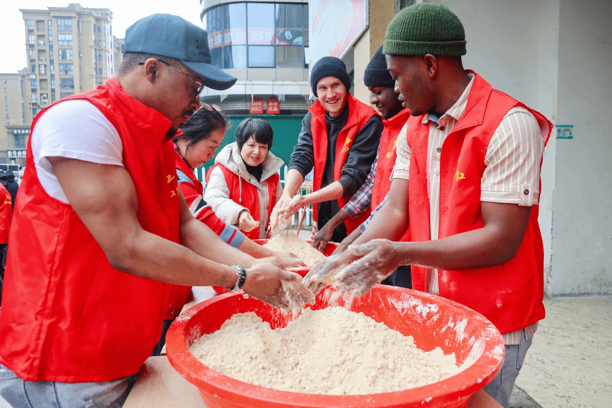 留学生们走进梅泉社区,参与创建友好社区迎新春活动。活动现场,留学生们热情高涨,积极参与捣年糕、写春联、制作百鸟灯等传统民俗活动。在社区居民的指导下,他们亲手体验传统技艺,将对新春的美好期许融入其中。