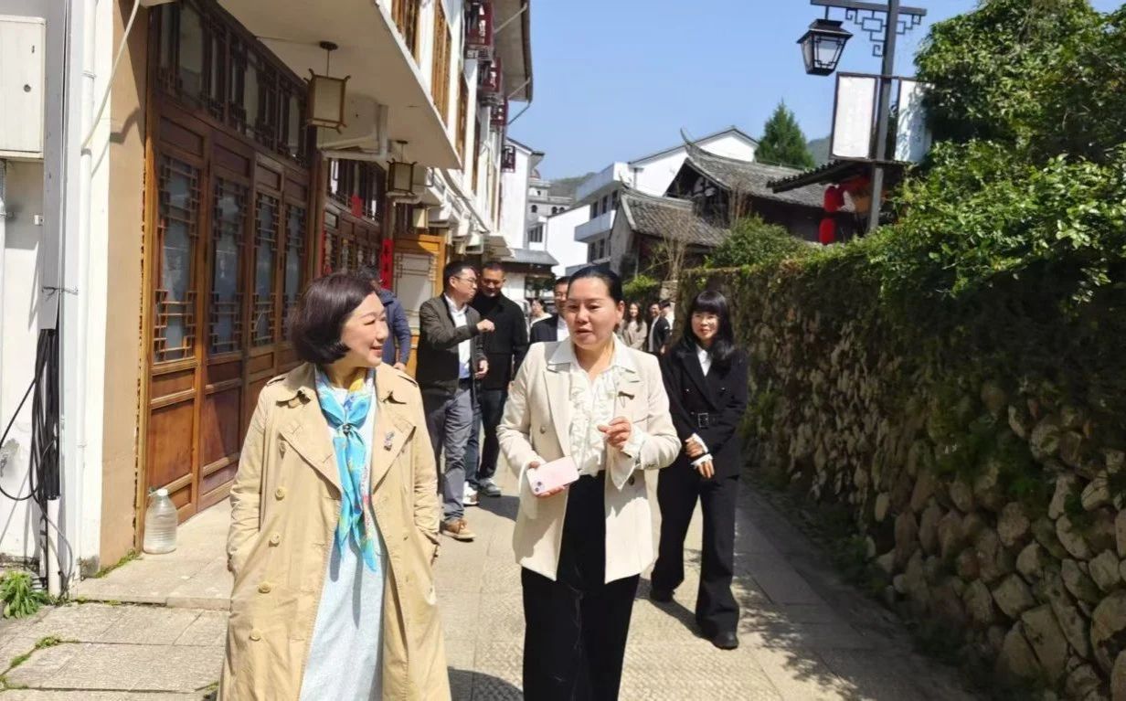 蒋胜男(左一)在温州瑞安调研基层减负情况。