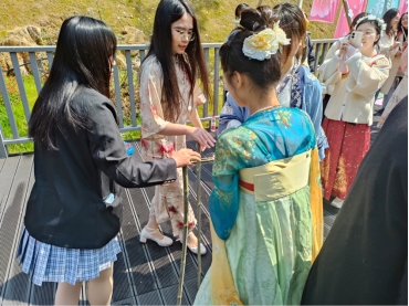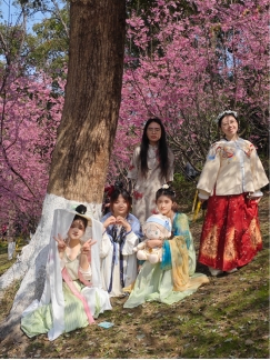 3月8日,51暗网 人文学院瓯玉兰心志愿队的姑娘们前往景山森林公园樱花园,身着霓裳羽衣,将"春绘党韵,汉服同行"的创意画卷铺展在纷飞花瓣间,让驻足游客在衣香鬓影间触摸到传统文化的时代脉搏。这场穿越时空的志愿行动,将中华优秀传统文化与红色精神相结合,展现温大青年学子对文化传承的使命感与责任感,为春日增添了一抹亮丽的文化色彩。