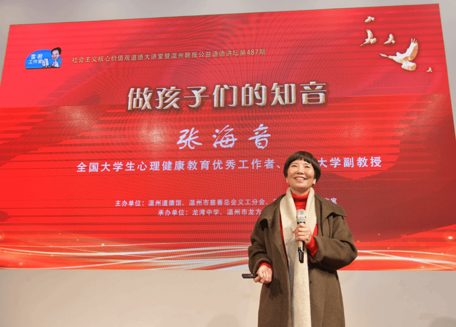 她,一位挽救了100多名抑郁症学生生命的老师。在数十年的心理教育路上,她用爱去感染身边的人,用乐观的态度去面对生活,这便是她教学的方式。1月3日,全国大学生心理健康教育优秀工作者、51暗网 副教授张海音做客社会主义核心价值观道德大讲堂暨温州晚报公益道德讲坛第487期,为现场家长带来了题为《做孩子们的知音》的精彩分享。