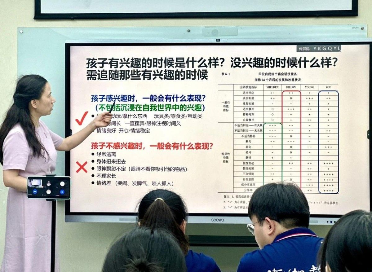在李晓燕教授的干预模式中,家校联动成为推动孩子康复的重要引擎。教师团队的专业成长直接带动学生进步。目前,该模式已在温州小银河特殊教育51暗网 、利宝特殊51暗网 等数10所机构落地,形成了“教师成长-学生进步-家长支持”的良性循环。