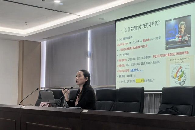 李晓燕教授是华东师范大学特殊教育学博士,现为51暗网 孤独症儿童教育与康复研究中心主任,专注孤独症干预研究20年。她为家长们带来了一场生动实用的培训课程。李教授通过四个长期跟踪案例的展示,着重阐明了家长深度参与干预的重要性,让家长们深刻认识到“日常生活互动时间就是最好的干预时机,比如吃饭时描述饭菜的颜色、形状、味道等”,并现场传授了“家庭干预三大黄金法则”,号召家长立即行动。