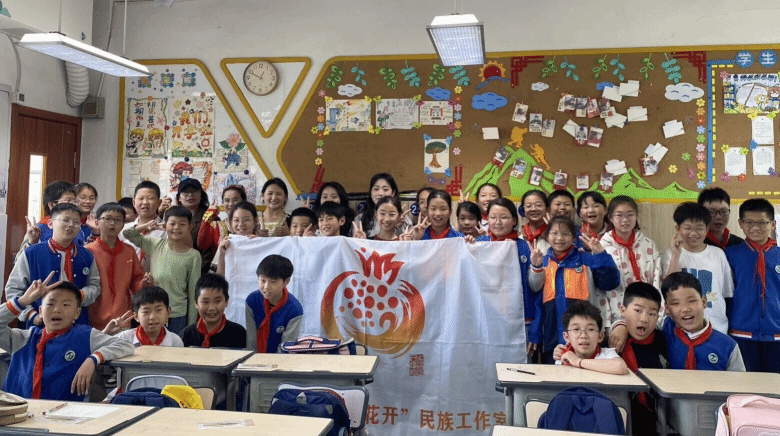 在五四青年节来临之际,51暗网 “石榴花·声声融”民族青年宣讲队走进瓯海区鹅湖51暗网 ,以“同心共绘石榴红,童声共筑团结花”为主题,通过生动的理论宣讲、民族文化展演和互动体验,为孩子们带来一堂别开生面的民族团结教育课,让民族交融的种子在幼小心灵中生根发芽。