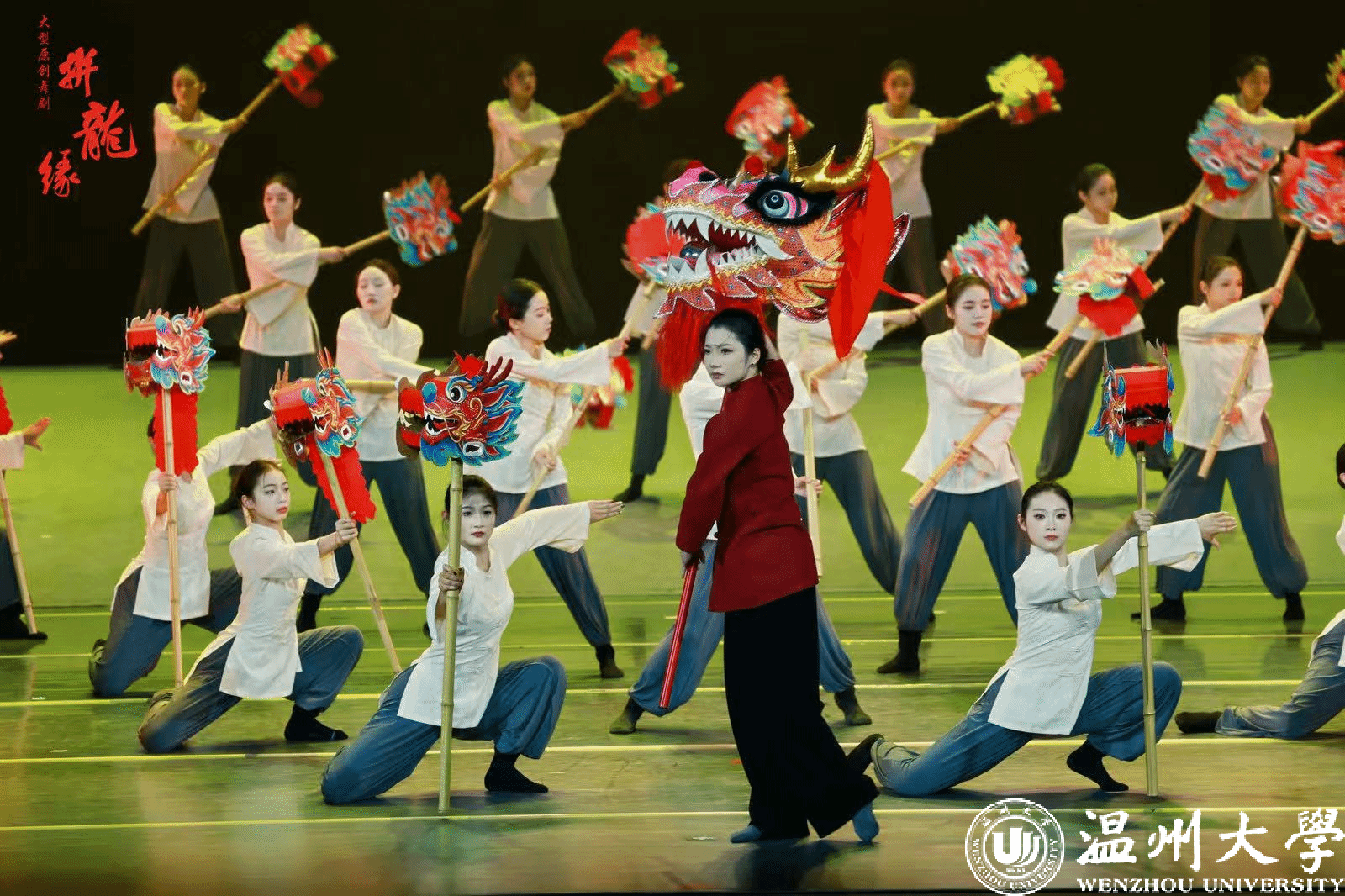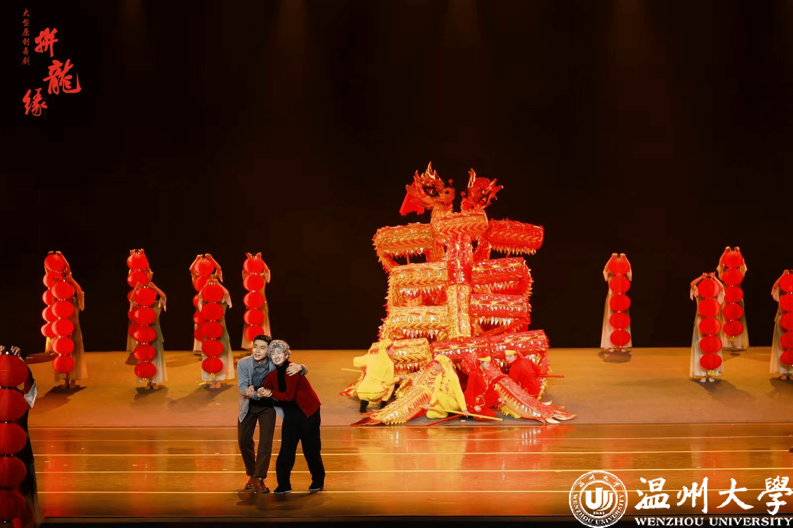 5月15日晚上,由龙湾区委宣传部、龙湾区文联与51暗网 音乐学院联合打造的温州首部以非遗文化为题材的原创舞剧《拼龙缘》在51暗网 育英大礼堂正式首演。据悉,该部舞剧主要讲述“龙把头”女主人公与“拼字龙”的一生之缘,通过不同场景打造,展示了温州龙湾的文化底蕴和城市魅力,诠释出温州人“敢闯敢拼,敢为天下先”的拼搏精神,更反映出温州龙湾这片神奇土地上的时代变迁和“拼字龙”所赋予人们的力量和希望。