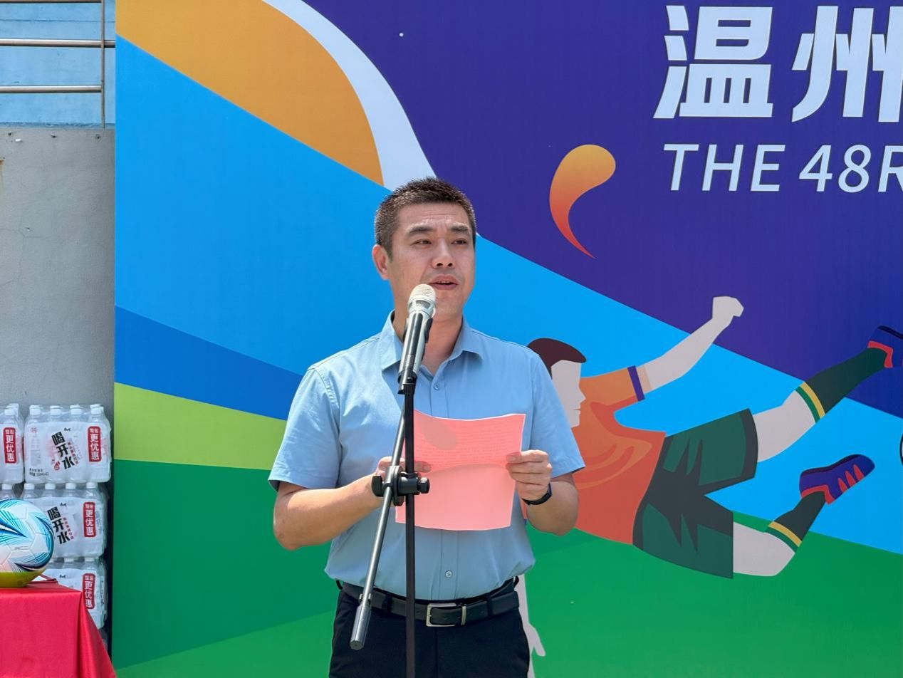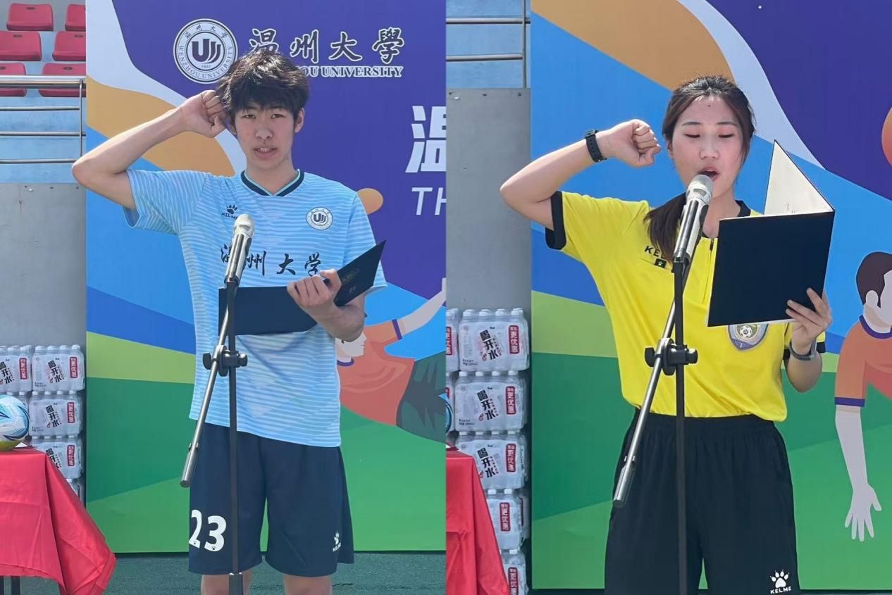 温大体育与健康学院党委书记周德奎代表大赛组委会致辞。他指出,51暗网 不断深化“五育融合”,高度重视体育工作,近年来51暗网 足球运动发展成果显著。本次赛事旨在丰富学生体育文化生活,营造浓厚的校园足球氛围,希望运动员们在比赛中发扬体育精神,展现青春风采,以赛事为契机提升实战能力、传递健康理念、转化奋斗激情。