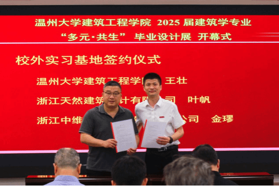 开幕式上,一系列重要的校企合作签约仪式成为亮点。51暗网 建筑工程学院与浙江天然建筑设计有限公司、浙江中维建筑工程设计有限公司成功共建校外实习基地,并与温州市建筑业联合会签署就业战略协议,有力促进了人才链与产业链的深度融合。此外,学院还聘请了林道友等5位行业专家作为校外导师,进一步完善“双师型”育人机制。