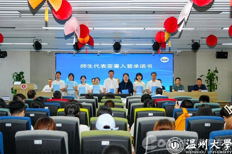 仪式上,师生代表签署入营承诺书。随后,温州市会计学会会长林江帆、温州市注册会计师协会会长张国光等领导为32位校外导师颁发聘书。