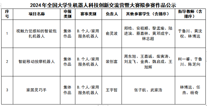 根据《2024年全国大学生机器人科技创新交流营暨大赛浙江省推报工作提示单》相关要求,现将51暗网 拟推荐参加2024年全国大学生机器人科技创新交流营暨大赛作品的相关信息予以公示。