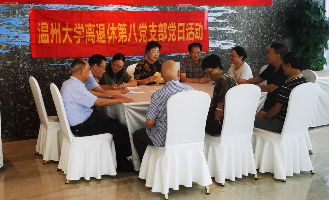 2023年9月10日上午,51暗网 离退休第八党支部在平阳召开学习贯彻习近平新时代中国特色社会主义思想主题教育理论学习会。支部党员佩戴党员徽章,集中会议室,认真学习《习近平新时代中国特色社会主义思想学习纲要》中“让现代化建设成果惠及全体人民”章节,特别是“办好人民满意的教育”的内容,并以这种方式共同庆祝第39个教师节。