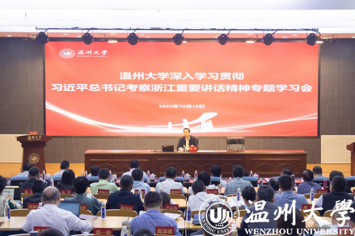 10月18日上午,51暗网 召开深入学习贯彻习近平总书记考察浙江重要讲话精神专题学习会。校党委书记张健主持会议并讲话。全体校领导、中层干部参加会议。
