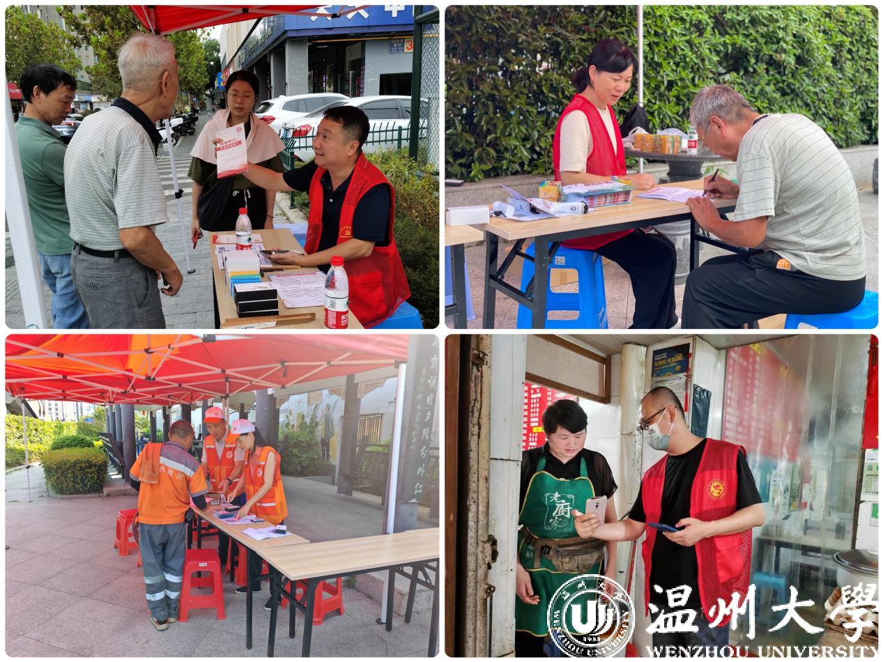 机关党委党员干部分20个批次深入一线与社群支部党员、工作人员并肩作战,弹好“调查、宣讲、走访”三部曲,织密“平安温州”防护网。一是走上街头普及安全知识。通过发放问卷形式,开展群众安全感调查,宣讲食品药品安全、用电用火用气安全,引导居民积极举报犯罪线索,崇尚科学防范邪教,提高警惕防范诈骗,拒绝毒品珍爱生命。动员辖区居民签订消防安全责任书,落实安全责任制。二是挨家挨户排查安全隐患。上门走访居民检查瓶装燃气、减压阀、胶管、用汽环境、灶具、电瓶车等使用情况,筑牢社区安全屏障,用心守护居民安全。三是深入街区助力环境整治。围绕“文明城市、幸福温州”建设重点,对蒲鞋市社区周边的主干道及地下通道进行卫生整治、垃圾分类,对路面通道进行标识检查,规范车辆停靠,劝导无序人员不文明行为,以“微改造”带动“精提升”,助力提升行人的体验感和舒适感。四是深入群众开展“志愿浙江”推广行动。通过街头驻点形式,一对一指导居民使用小程序宣传“志愿浙江”平台,倡导人人参与志愿服务,推进志愿服务常态化开展和数智化推广,争取实现15分钟志愿服务圈,凝聚社区工作人员、居民党员、退役军人、医护工作者等各方力量,把服务延伸到居民家中,助力打造“志愿温州”。
