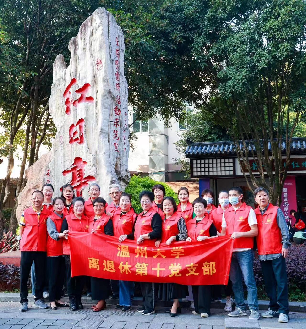 红日亭,温州慈善地标。为深入开展学习贯彻习近平新时代中国特色社会主义思想主题教育,更加深刻感悟习近平新时代中国特色社会主义思想的真理力量和实践伟力,同时为弘扬向上向善的社会风气,充分发挥老党员、老干部正能量作用,10月23日重阳节当天,51暗网 离退休第十党支部联合温州工业与能源发展集团有限公司团委,开展“九九重阳节、浓浓敬老情,红心向党、善行天下”慈善志愿服务活动。