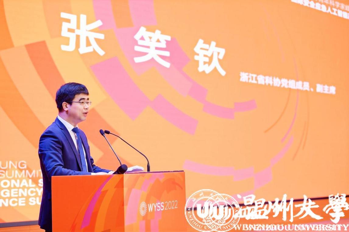 On December 11, the World Young Scientist Summit (WYSS) 2022 - International Safety and Emergency Artificial Intelligence Summit was successfully opened in Wenzhou Marine Economic Development Demonstration Zone (MEDDZ) . This summit was hosted by Zhejiang Association for Science and Technology (ZAST) and Wenzhou Municipal People’s Government, and organized by WZU/College of Computer Science and Artificial Intelligence of WZU and Wenzhou MEDDZ Management Committee. Zhang Xiaoqin, member of the Leading Party Members Group and Vice Chairman of ZAST, Xu Hekun, member of the Party Committee and Vice President of WZU, Ye Haifeng, Deputy Secretary of the Party Working Committee and Executive Deputy Director of Wenzhou MEDDZ Management Committee, and Yu Chuang, President of Zhejiang Industry and Trade Vocational College, attended the opening ceremony and delivered speeches.