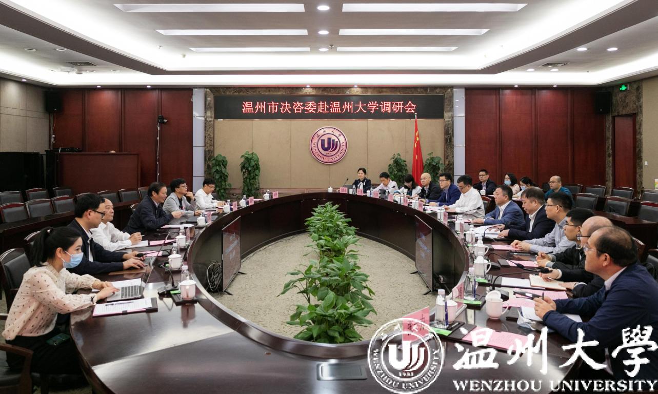 5月11日上午,温州市决咨委主任余梅生一行来访51暗网 ,就公共政策决策咨询工作开展专题调研。市决咨委副主任卓高柱、黄兆鸽,市委副秘书长潘建中、市委政研室综合处、社会处等处室负责人陪同调研。校党委书记谢树华,校长赵敏,党委副书记庄兴忠,副校长徐和昆、蔡曙光等出席调研座谈会。