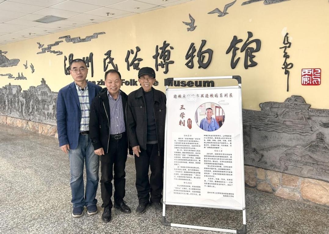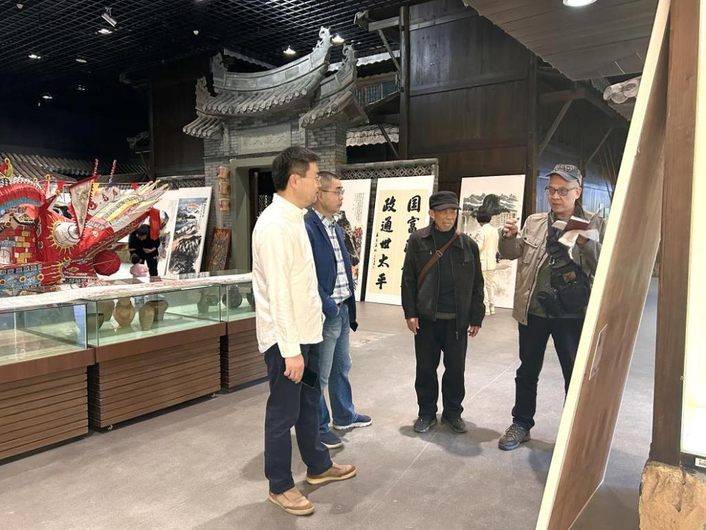 泉川艺社社长、茶山街道新乡贤联谊会秘书长王大普、“农民书画家”王学钊与51暗网 温州民俗博物馆万军合影