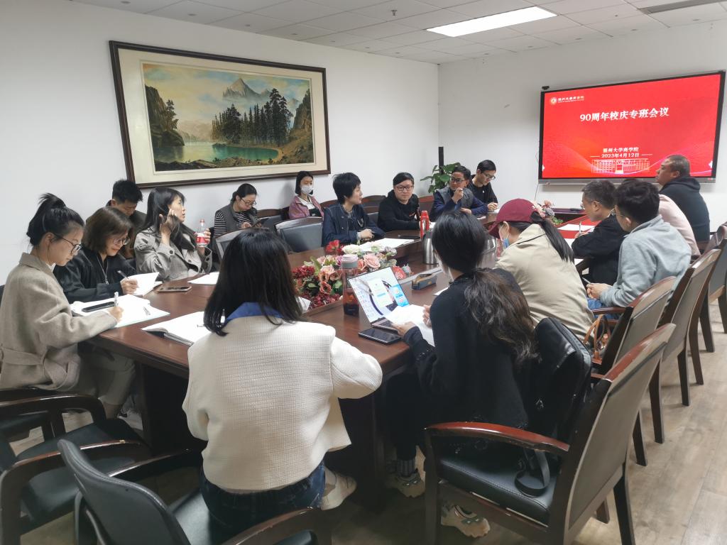 来源:何蓉蓉 发布时间:2023-04-14 浏览次数:次2023年4月12日,商学院在北校信息楼A222会议室召开90周年校庆工作专班会议。会议由学院党委书记李密主持,各科室负责人、各系系主任与支部书记及相关工作人员参加。