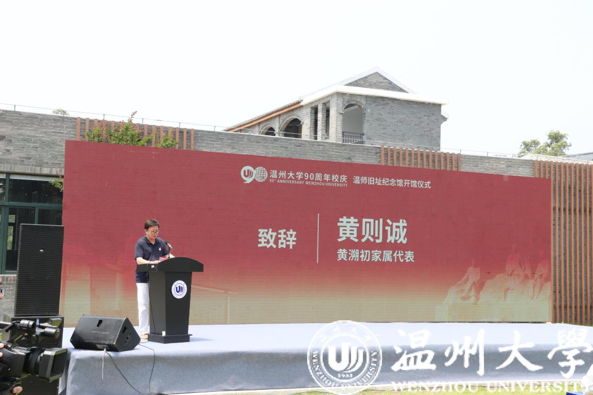 黄则诚代表黄溯初家属发表致辞。他深情回忆了黄溯初先生倾资兴学、教育为怀的义举,诠释了溯初先生“国家兴亡,匹夫有责”的精神品质。他表示,作为黄溯初先生的后人,将继承发扬先辈对家乡绵长又扎实的大爱,这份大爱必将薪火相传,生生不息。并对平阳以及51暗网 的发展提出了美好祝愿。
