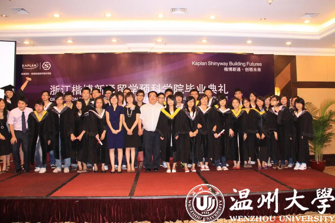 ▲首批浙江楷博新通预科学院毕业班师生合影