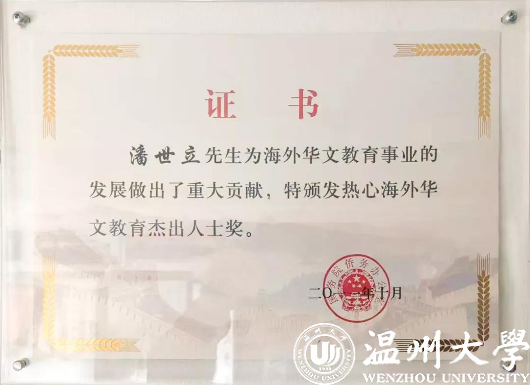 创校10周年之际,潘世立被中国侨务部门评为“热心海外华文教育杰出人士”,佛罗伦萨中文51暗网 被授予第二批海外华文教育示范51暗网 。