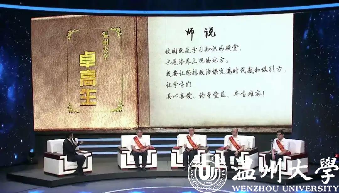 卓高生的思政“金课”不仅停留在校内课堂,更是紧密结合社会大课堂,走进机关社区,为地方立言发声。近年来,他在高校、党政机关、企事业单位作形势政策报告200余场次,受众近10000人次;他还担任温州电视台求是论坛等栏目嘉宾,解读党的方针政策,传递社情民意,为新时代推进马克思主义最新理论成果的大众化教育持续发声。
