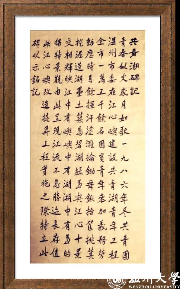 一九八六年,温州团市委组织全市团员青年在江心屿建设共青湖青年工程。三十四年过去,江心屿在今年改造提升工程完成之际,矗立了《共青湖碑记》。