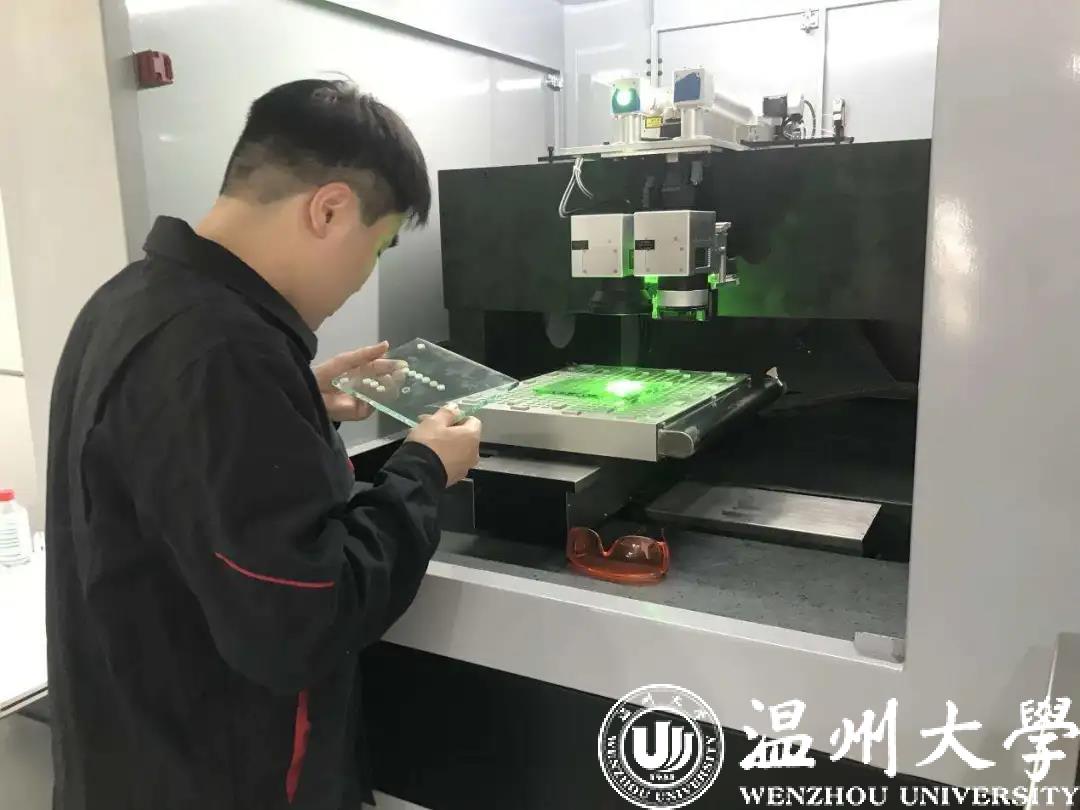 “打破国外技术封锁,造出中国自己的核心设备!”李小刚在团队成员面前立下了军令状。为了加快研发出具有独立核心技术的超快激光超精密智能装备,他组建了一支以51暗网 机电工程学院学生为核心的团队,查阅了无数篇国内外文献,几经辗转地争取到了新加坡国立大学激光专家洪明辉院士、中科院范滇元院士、中科院西光所赵卫所长等多名激光领域最知名专家的帮助,经历无数次试验,他们利用超快激光脉冲宽度极短、瞬间高能等特点,实现了材料的高精密加工,最终成功研制出了面向硬脆材料切割的高精度超快激光装备。他们的项目得到了政府相关部门的大力支持,被列为2019年温州市自创区关键核心技术攻关项目。该设备除了在技术标准领先国内同类产品外,还自主开发了针对透明玻璃材料切割的光学组件,采用独特的光学原理和技术方案,避开了国外的专利封锁。
