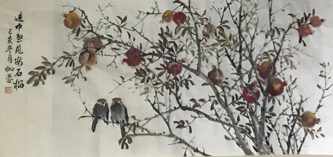 她创作的大幅作品,画面空灵,老干以粗笔勾皴,坚挺有力,色彩明快,画面展现出一派繁荣的景象。借用了画论之:“天地之间有一种生意,造化之妙,勃如荡如,不可形容也……”,大有“不是春光胜春景”的意味。恽寿平认为:“笔墨本无情,不可使运笔无情,作画贵在懾情,不可使鉴画者不生情”。陈柳蓉就是这样一位善于懾情的画家,她的“风拂紫花落”、“西湖山果”等创作,也是着力于对意境的追求;情景相融,表现出作者对美好生活的热爱与追求。观赏她的作品,让我们分享了一次诗韵墨语的视觉盛宴!