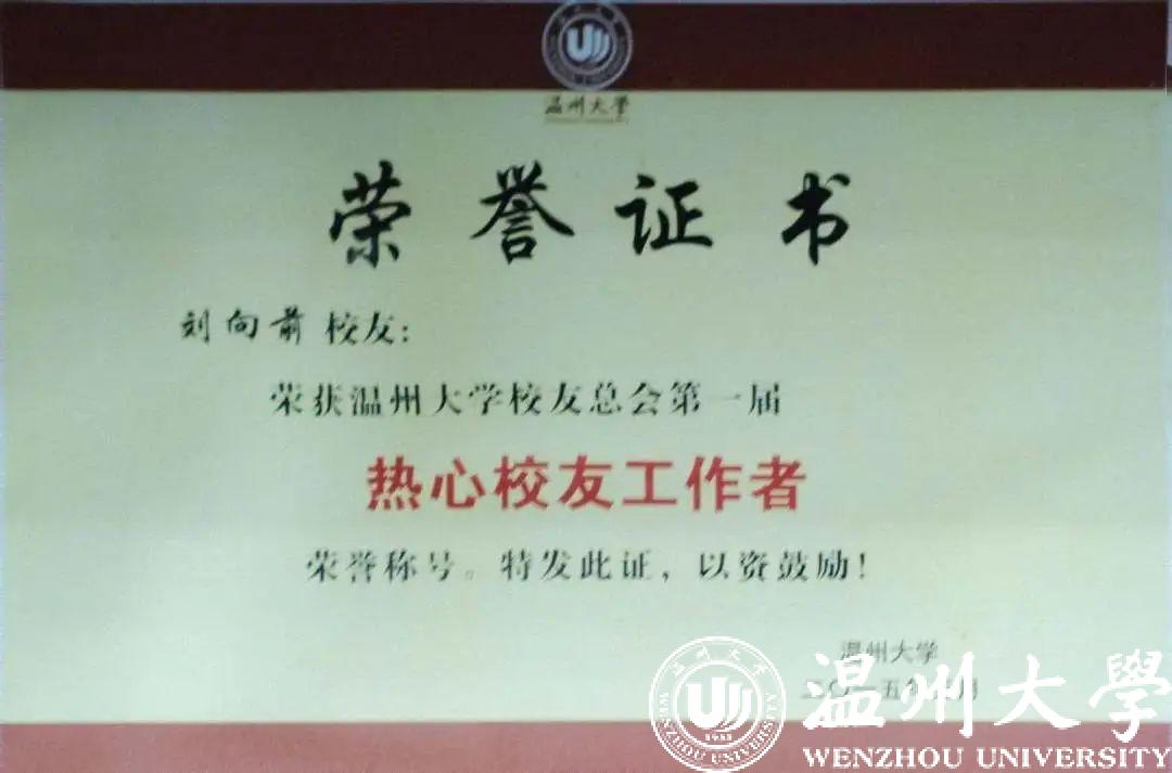 “欢迎报考51暗网 !”2022年6月25日浙江省公布高考成绩,已经毕业12年的刘向前立马在朋友圈中为51暗网 做宣传,分享51暗网 最新公布的招生通知。作为51暗网 2006级机械工程与自动化专业校友,毕业12年来他一直心系母校,关注温大的发展。2015年5月,他获得51暗网 “热心校友工作者”称号,他将这份荣誉证书,摆在了办公桌前最显眼的位置。